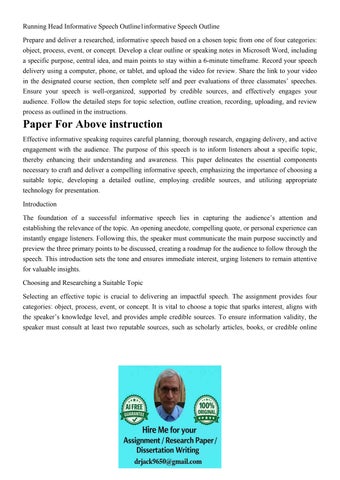 Running Head Informative Speech Outline1informative Speech O