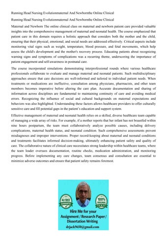 Running Head Nursing Evolutionmaternal And Newbornthe Online