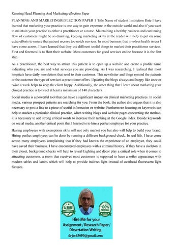 Running Head Planning And Marketingreflection Paper PLANNING
