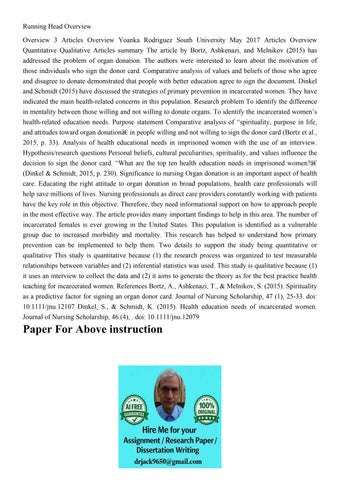 Running Head Overview Overview 3 Articles Overview Yoanka Ro