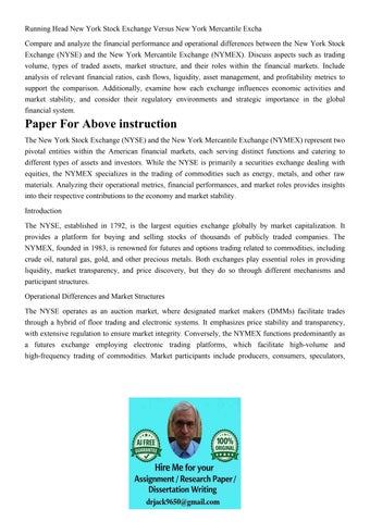 Running Head New York Stock Exchange Versus New York Mercant