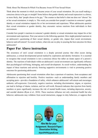 Think About The Moment In Which You Became Aware Of Your Sex