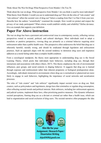 Think About The War On Drugs What Perspective From Module 1