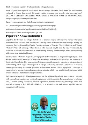 Think of your own cognitive development in the college class