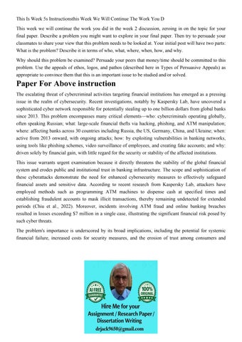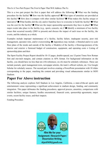 This Is A Two Part Project The First Is Paper That Will Addr