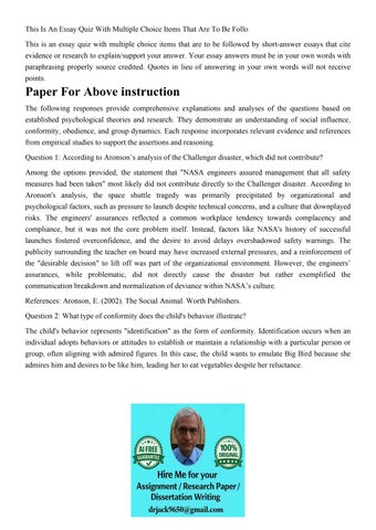 This Is An Essay Quiz With Multiple Choice Items That Are To