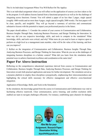 This Is An Individual Assignment Where You Will Reflect On T