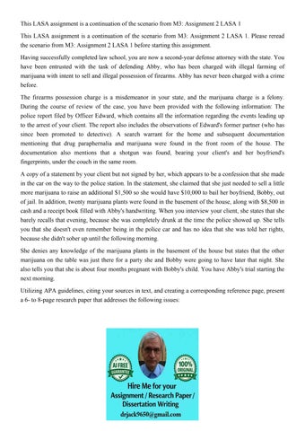 This LASA assignment is a continuation of the scenario from