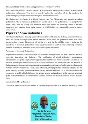 This Journal Entry Will Give You An Opportunity To Formulate