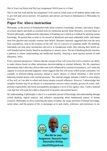 This Is Your Last Week And The Last Assignment I Will Count