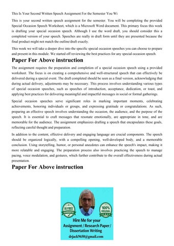 This Is Your Second Written Speech Assignment For the Semest