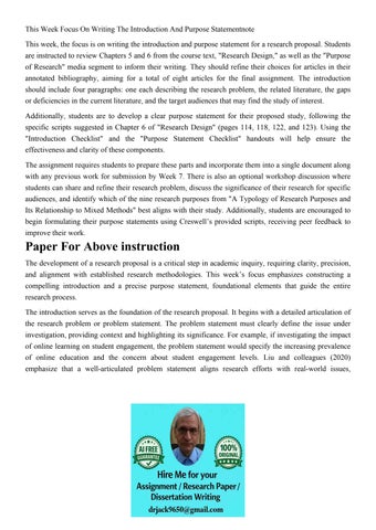 This Week Focus On Writing The Introduction And Purpose Stat