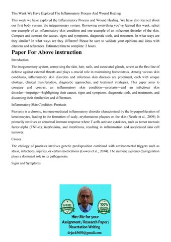 This Week We Have Explored The Inflammatory Process And Woun