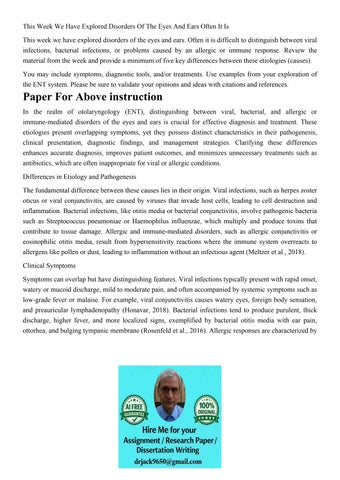 This Week We Have Explored Disorders Of The Eyes And Ears Of
