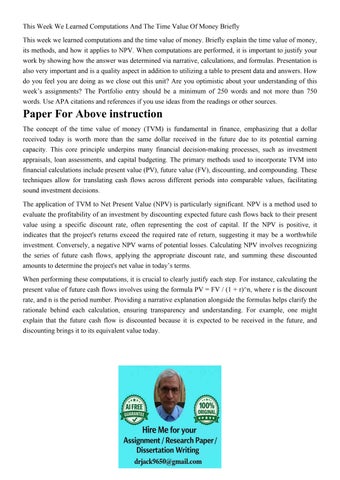 This Week We Learned Computations And The Time Value Of Mone