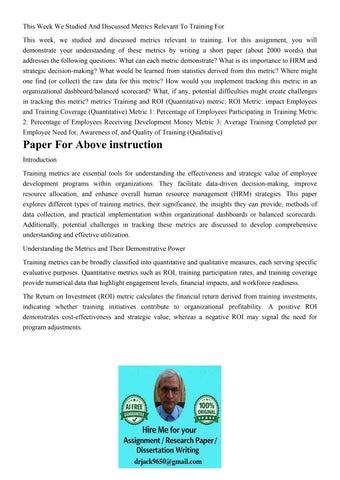 This Week We Studied And Discussed Metrics Relevant To Train