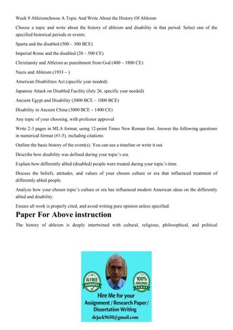 Week 9 Ableismchoose A Topic And Write About the History Of