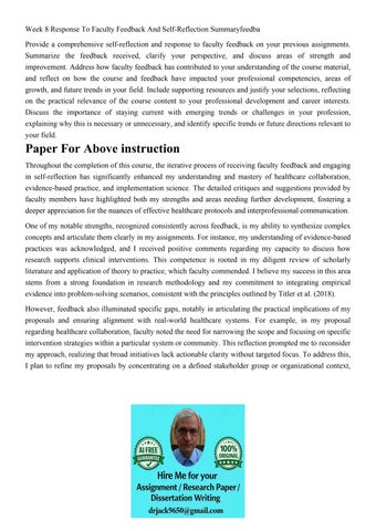 Week 8 Response To Faculty Feedback And Self-Reflection Summ