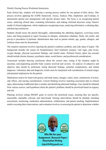 Weekly Nursing Process Worksheet Instructions Each clinical