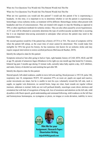 What Are Two Questions You Would Ask This Patienti Would Ask