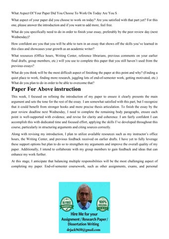 What Aspect Of Your Paper Did You Choose To Work On Today Ar