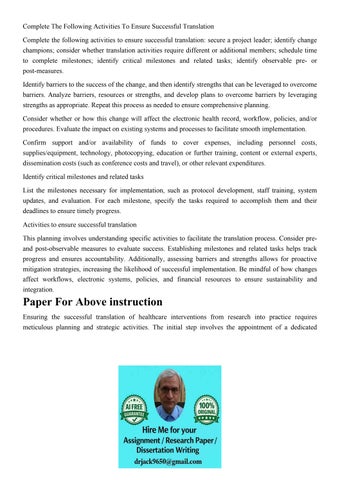 Complete The Following Activities To Ensure Successful Trans