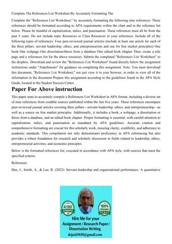 Complete The References List Worksheet By Accurately Formatt