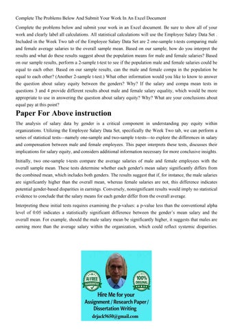 Complete The Problems Below And Submit Your Work In An Excel