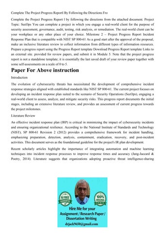 Complete The Project Progress Reportl By Following the Direc