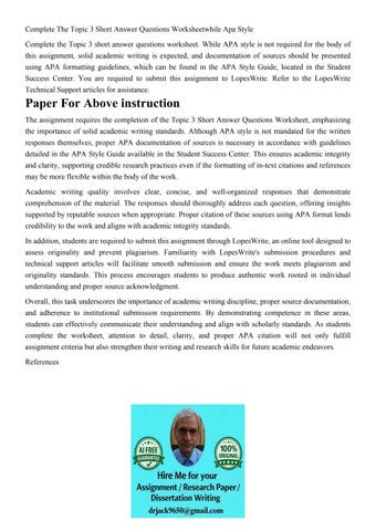 Complete The Topic 3 Short Answer Questions Worksheetwhile A