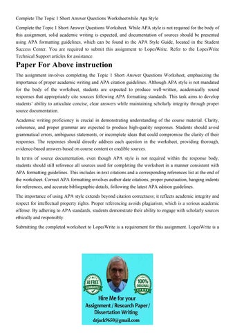 Complete The Topic 1 Short Answer Questions Worksheetwhile A