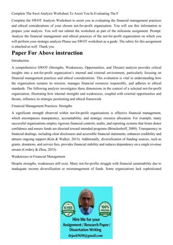 Complete The Swot Analysis Worksheet To Assist You In Evalua