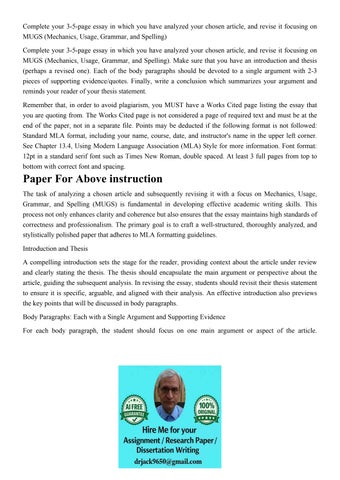 Complete your 3-5-page essay in which you have analyzed your