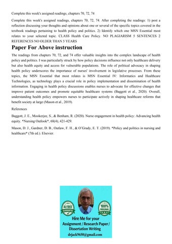 Complete this week's assigned readings, chapters 70, 72, 74