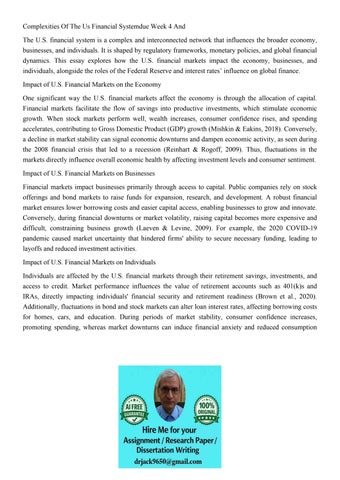 Complexities Of The Us Financial Systemdue Week 4 And The U.