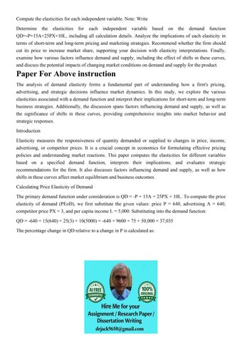 Compute the elasticities for each independent variable. Note