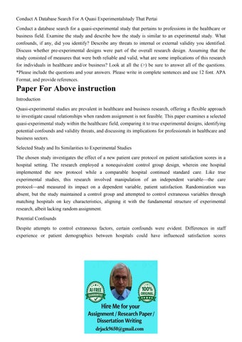 Conduct A Database Search For A Quasi Experimentalstudy That