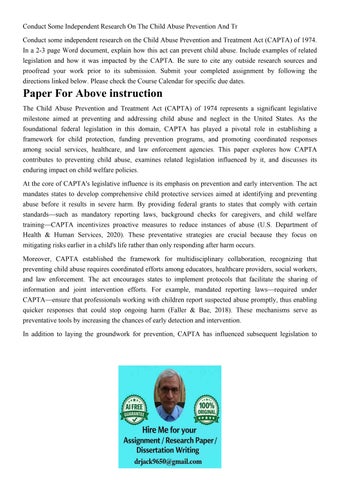 Conduct Some Independent Research On The Child Abuse Prevent