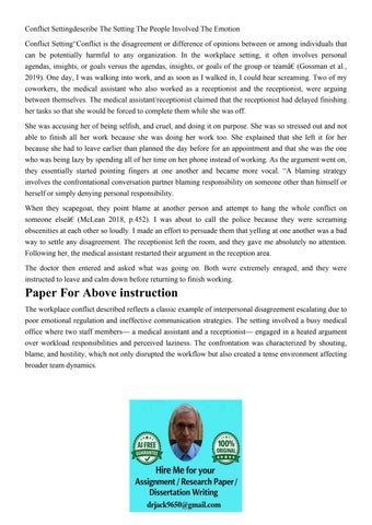 Conflict Settingdescribe The Setting The People Involved The