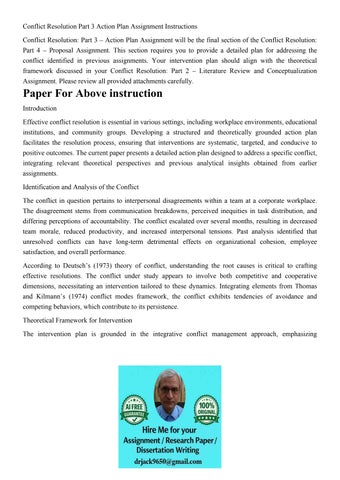 Conflict Resolution Part 3 Action Plan Assignment Instructio