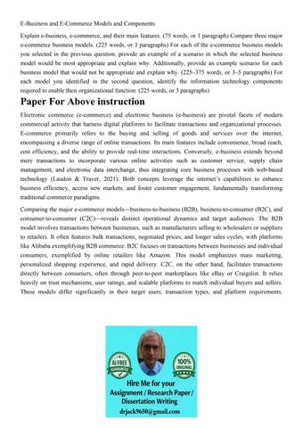 E-Business and E-Commerce Models and Components Explain e-bu