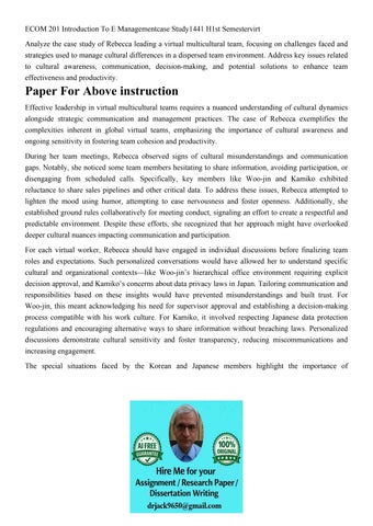 ECOM 201 Introduction To E Managementcase Study1441 H1st Sem