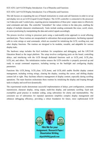 ECE 425L Lab 9 LCD Display Introduction: Use of Branches and