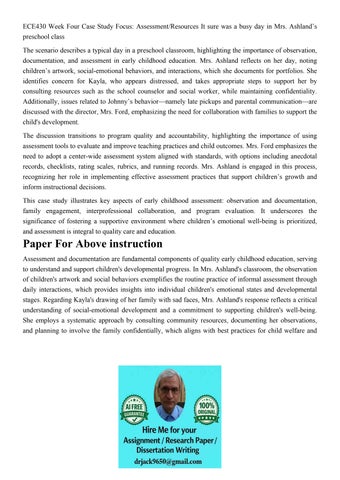 ECE430 Week Four Case Study Focus: Assessment/Resources It s