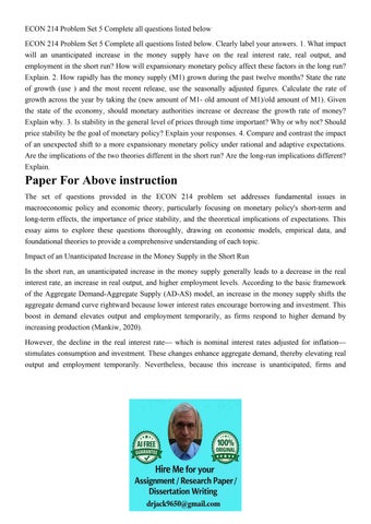 ECON 214 Problem Set 5 Complete all questions listed below E