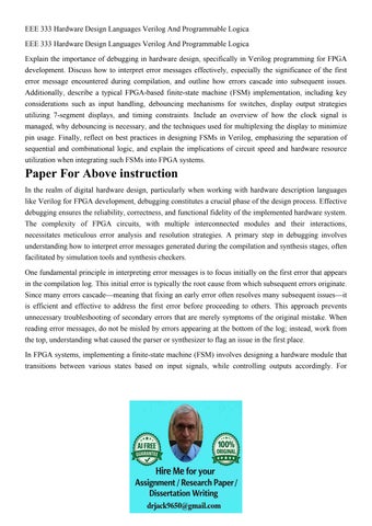 EEE 333 Hardware Design Languages Verilog And Programmable L
