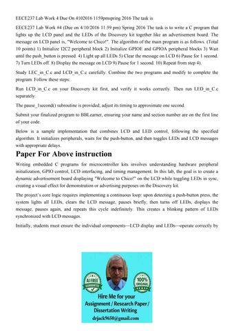 EECE237 Lab Work 4 Due On 4102016 1159pmspring 2016 The task