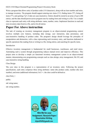 EECS 1510 Object Oriented Programming Project 6 Inventory St