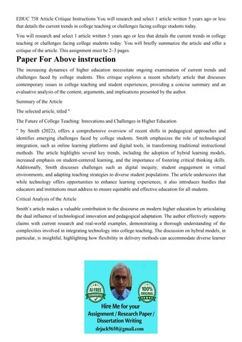 EDUC 758 Article Critique Instructions You will research and
