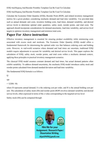 EOQ And Ropeoq And Reorder Pointthis Template Can Be Used To